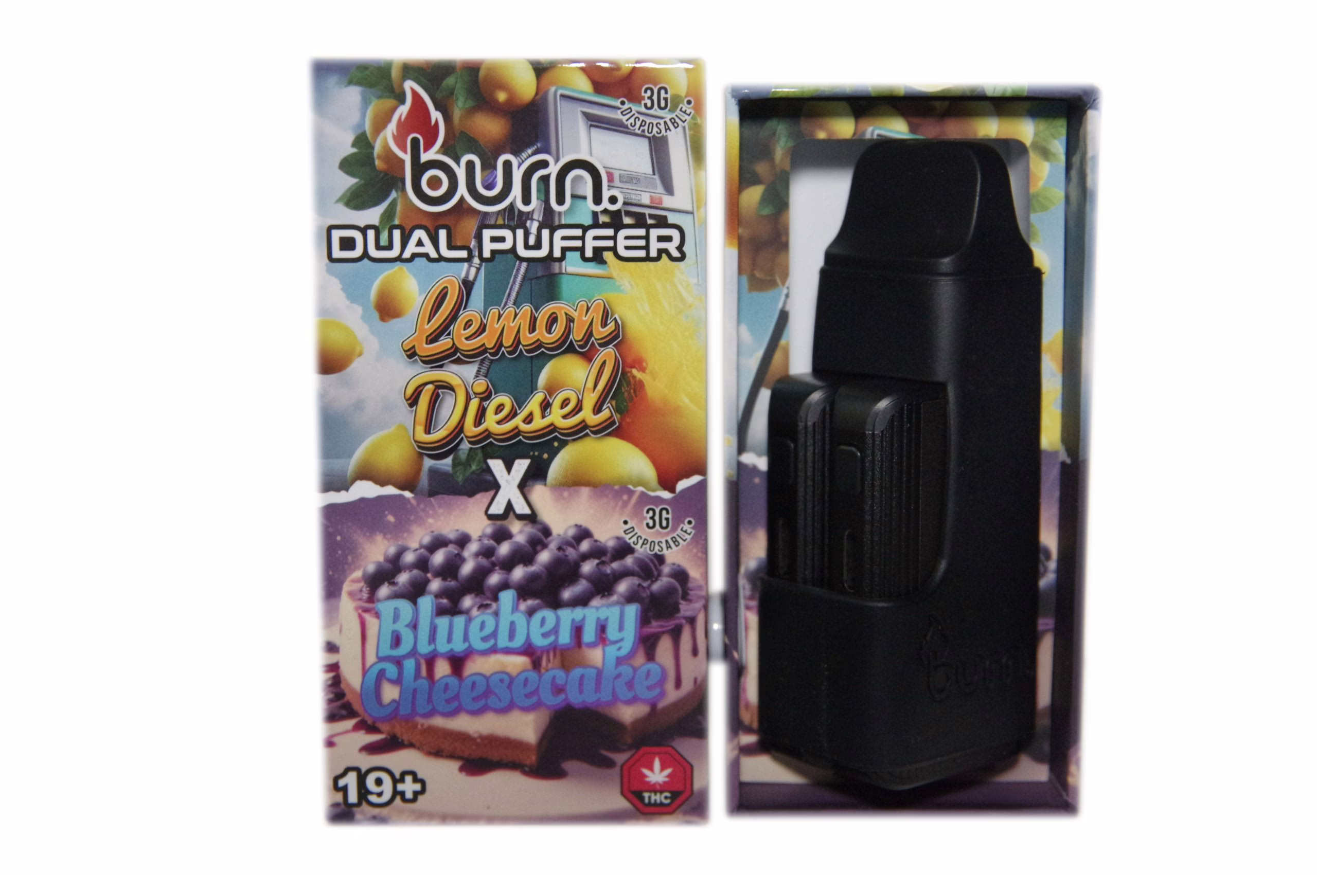Burn Dual Puffer Pen – Lemon Diesel 3g (S) + Blueberry Cheesecake 3g (H)