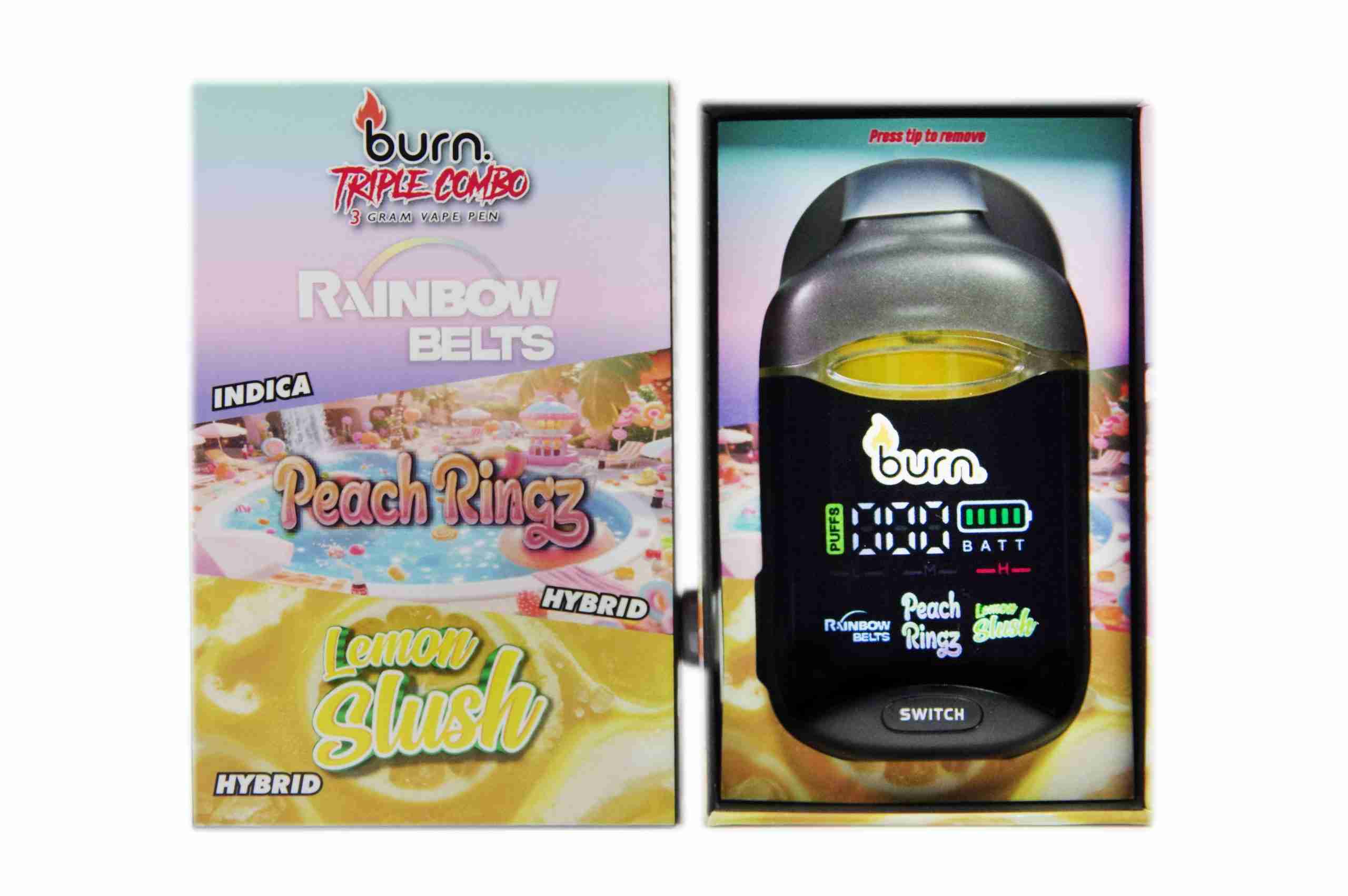 Burn Triple Combo (3 x 1 Gram) – Rainbow Belts + Peach Ringz + Lemon Slush