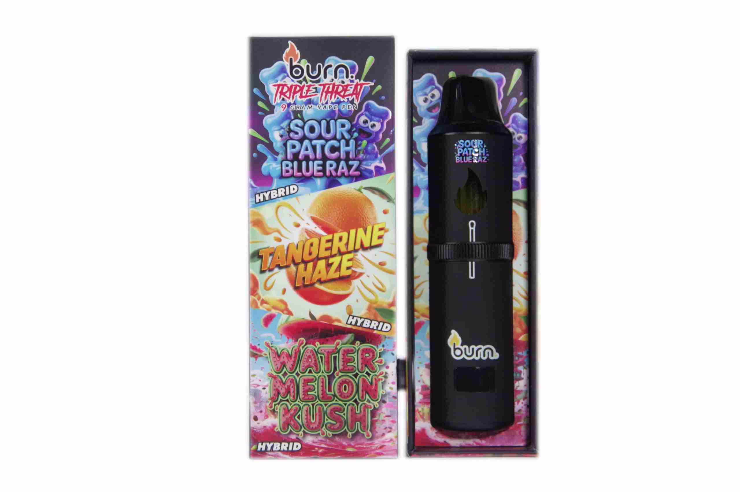 Burn Triple Threat Pen (9g) – Sour Patch Blue Raz + Tangerine Haze + Watermelon Kush