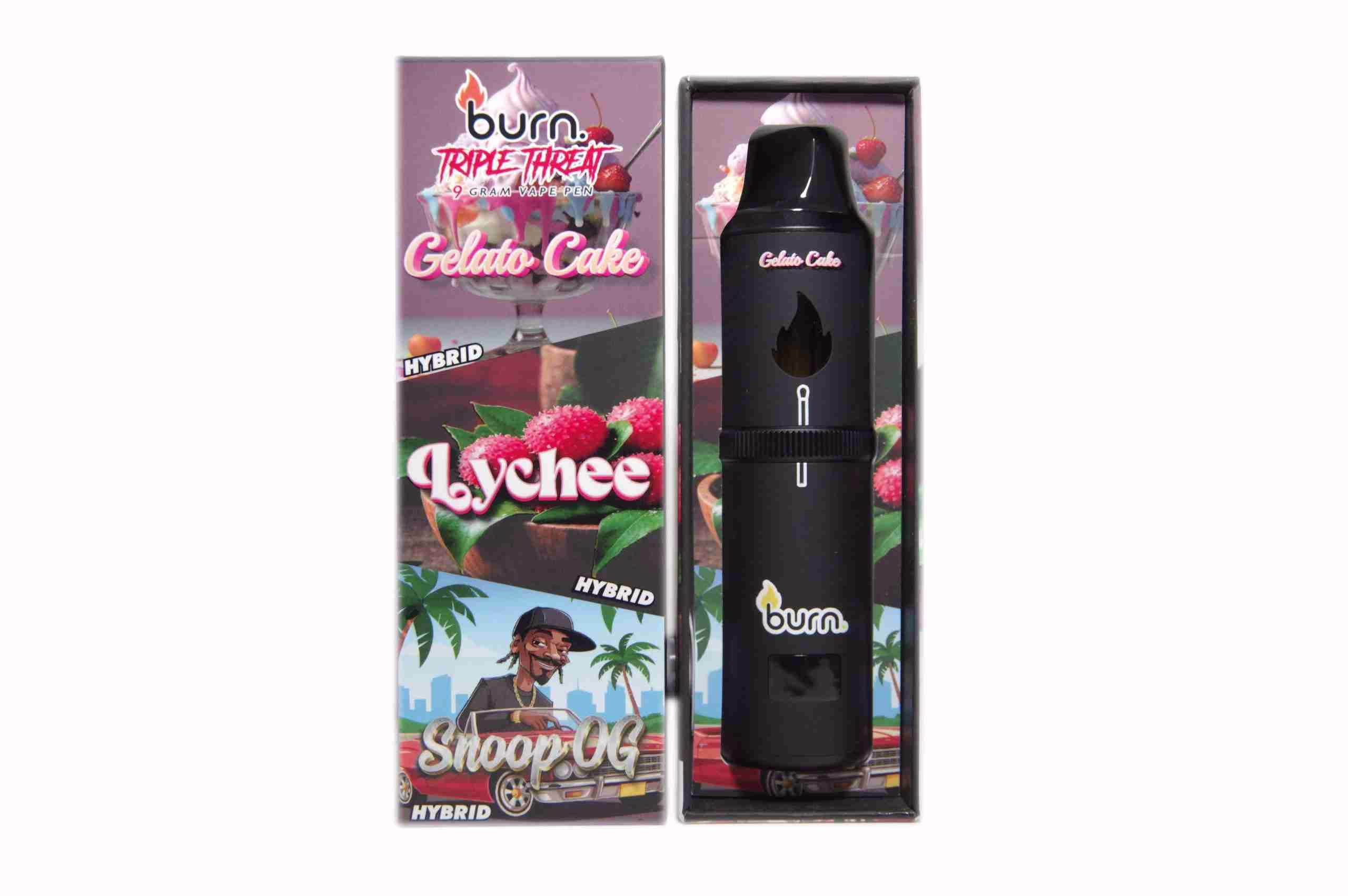 Burn Triple Threat Pen (9g) – Gelato Cake + Lychee + Snoop OG