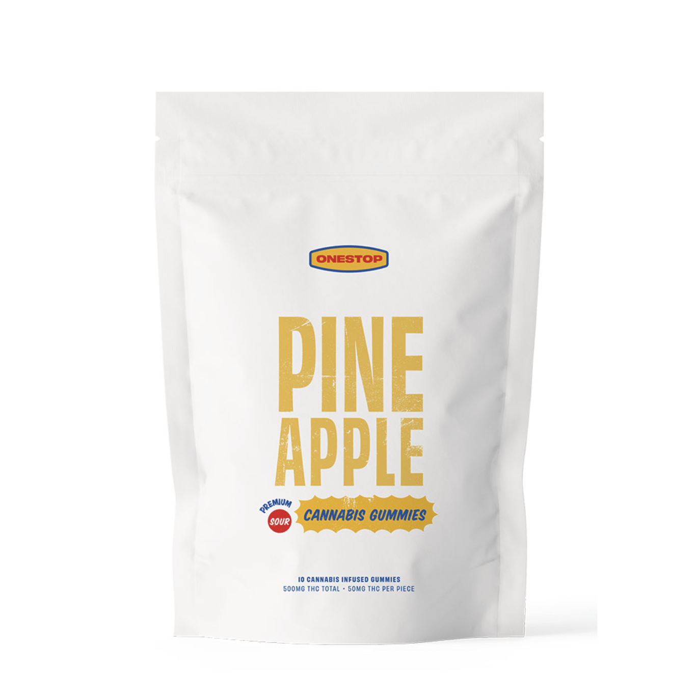 Skip the health and wellness premium attached to edible brands that flaunt their holistic healing properties and label their price tags accordingly, and get straight to having a blast with OneStop. Sour Pineapple OneStop THC gummies give you the best flavour and quality bang for your buck you could’ve asked for: with 500mg THC divided into 10 50mg THC gummies. All OneStop THC edibles are made using pure lab-tested Delta-9 THC.