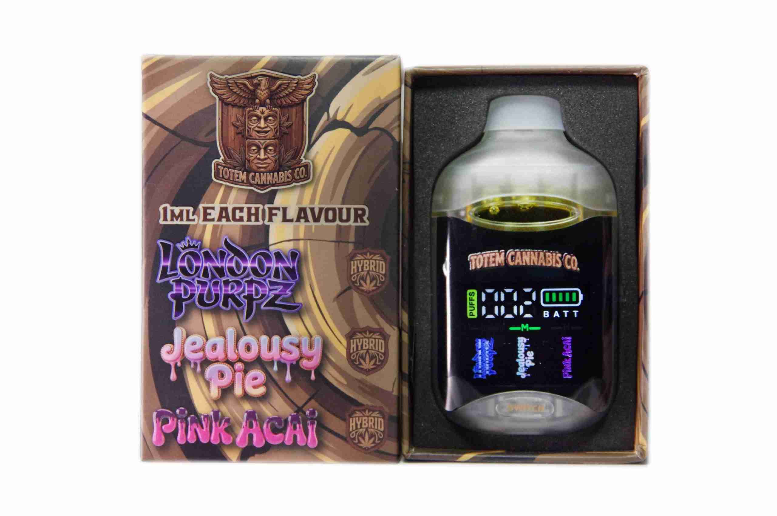 Totem Cannabis Co. Tri Chamber Vape – London Purpz + Jealousy Pie + Pink Acai (3 x 1 Gram)