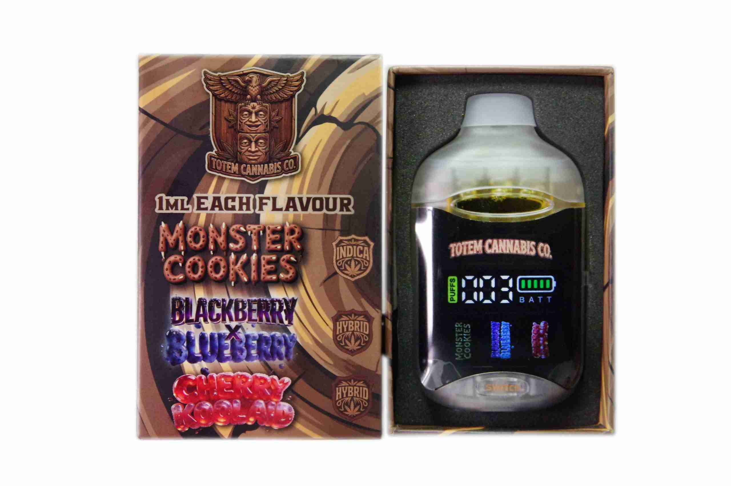 Totem Cannabis Co. Tri Chamber Vape – Monster Cookies + Blackberry x Blueberry + Cherry Kool Aid (3 x 1 Gram)
