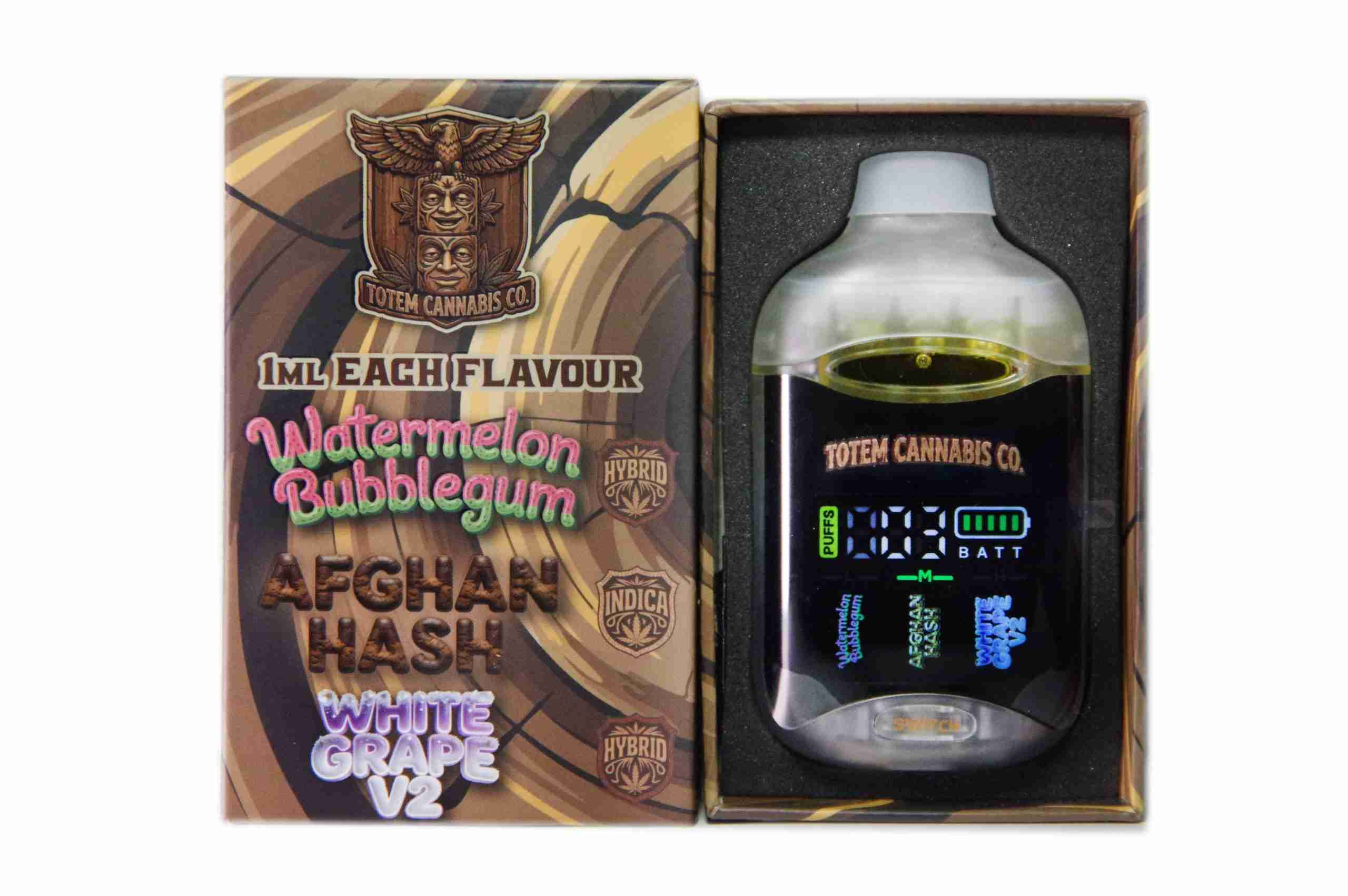 Totem Cannabis Co. Tri Chamber Vape – White Bubblegum + Afghan Hash + White Grape V2 (3 x 1 Gram)